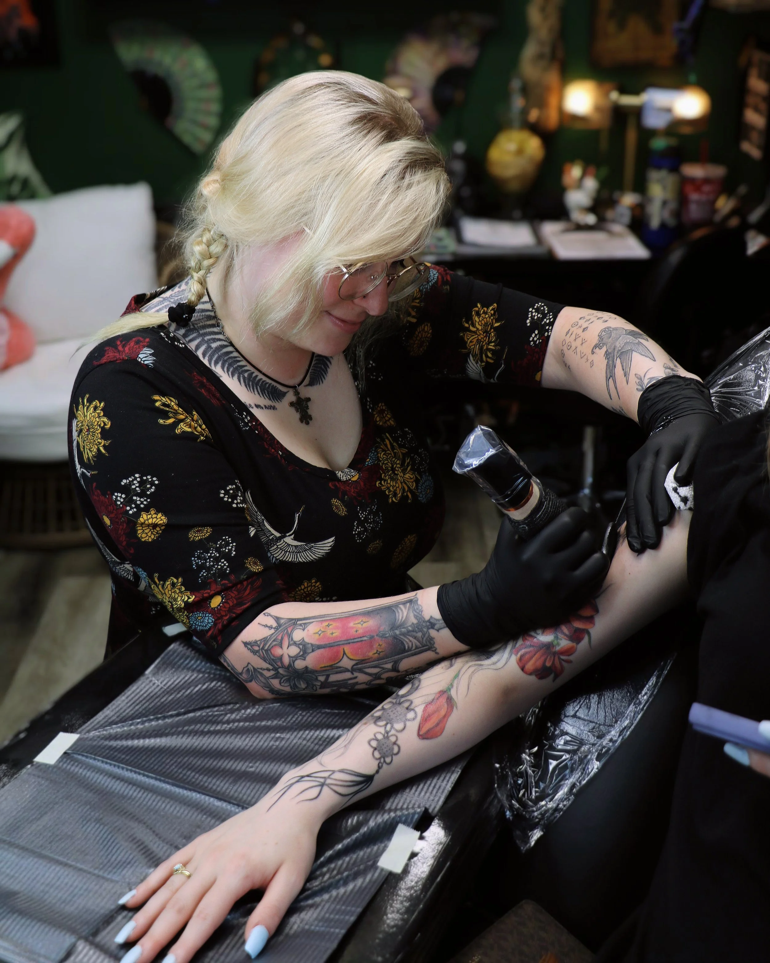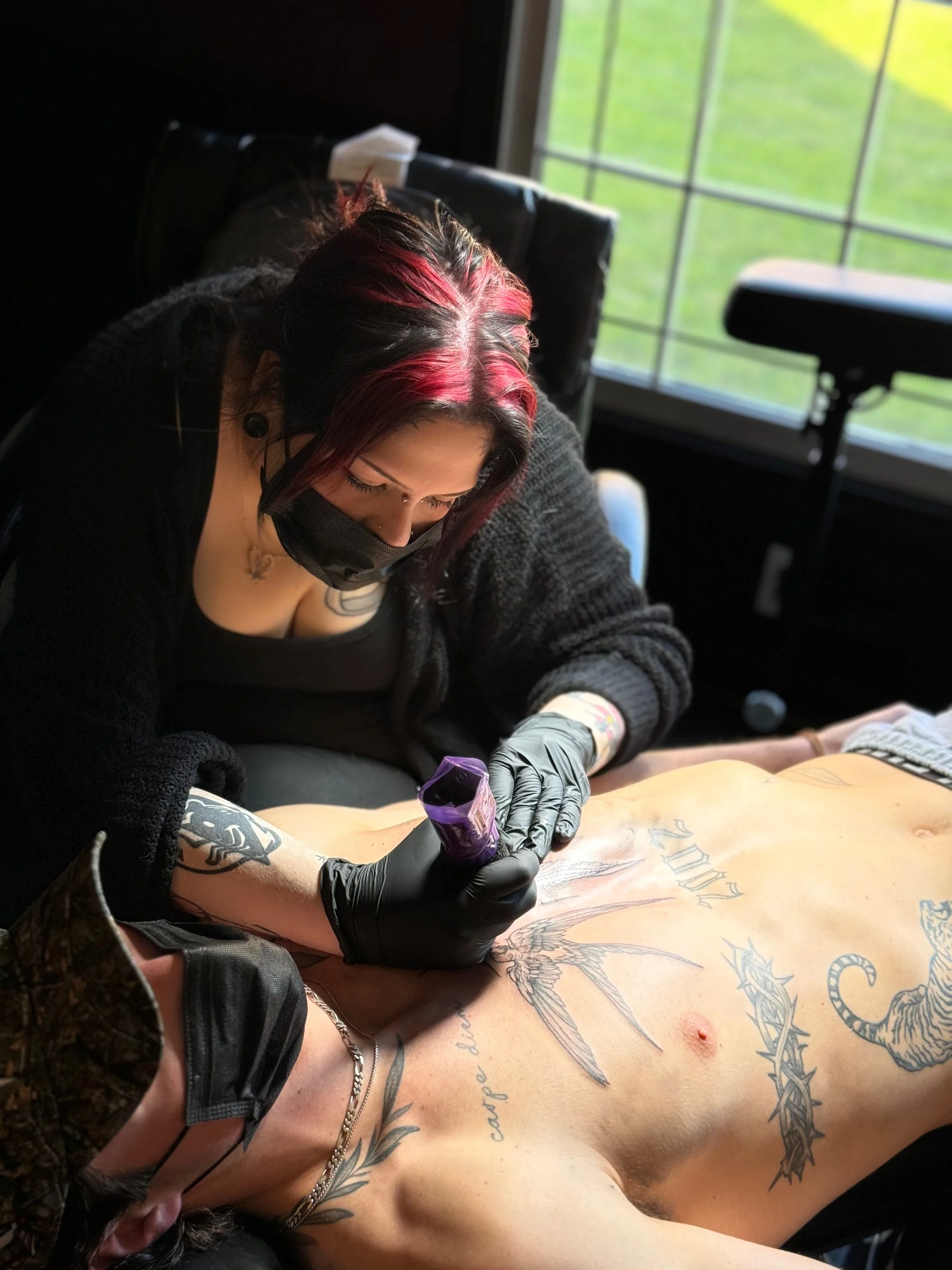 Olivia is an award-winning tattoo artist with several years of experience, specializing in detailed, realism-inspired pieces with bold linework and vibrant, saturated color. With a strong eye for precision and storytelling through ink, her work blends technical skill with creative depth. She regularly attends tattoo conventions across the state, where she showcases her craft and connects with the wider tattoo community. Olivia brings professionalism, creativity, and a genuine love for the art to every piece she creates. Book with Olivia today using the links below!